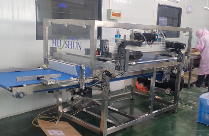 該設備適用于產(chǎn)量較大的食品流水線,可切正/長方形、片狀