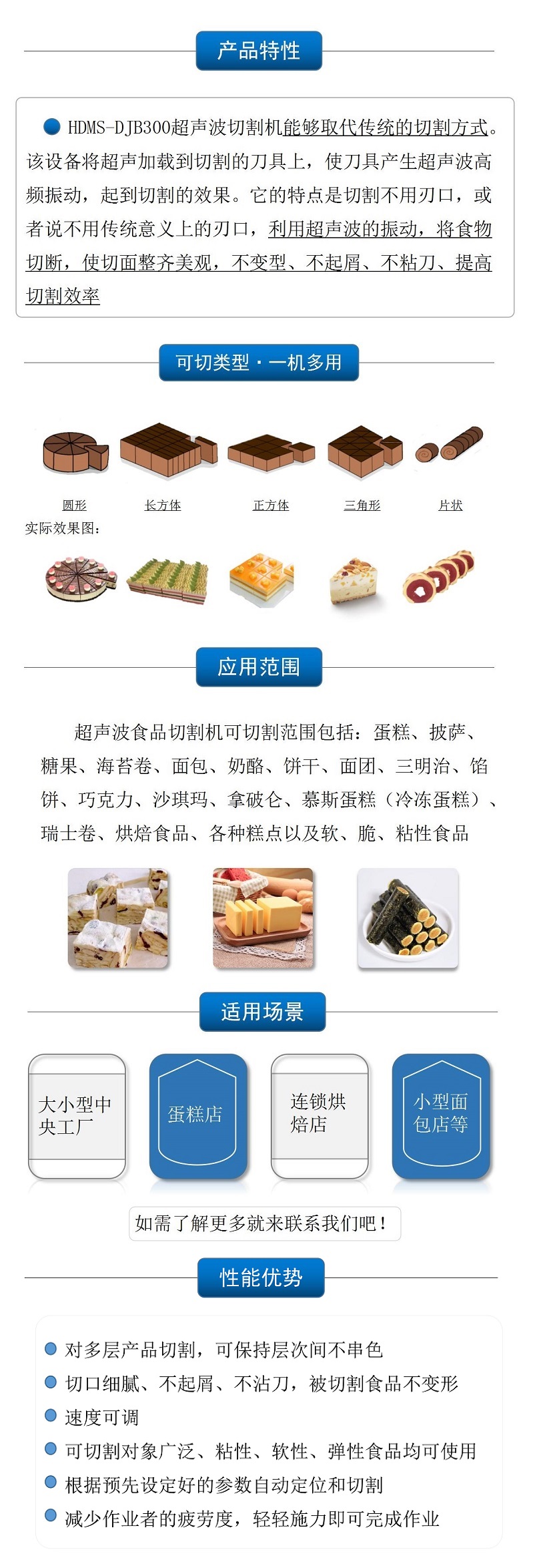 該設(shè)備配備雙把超聲波刀片,既可切方蛋糕,也可同時(shí)切兩個(gè)圓蛋糕,效率更高 |