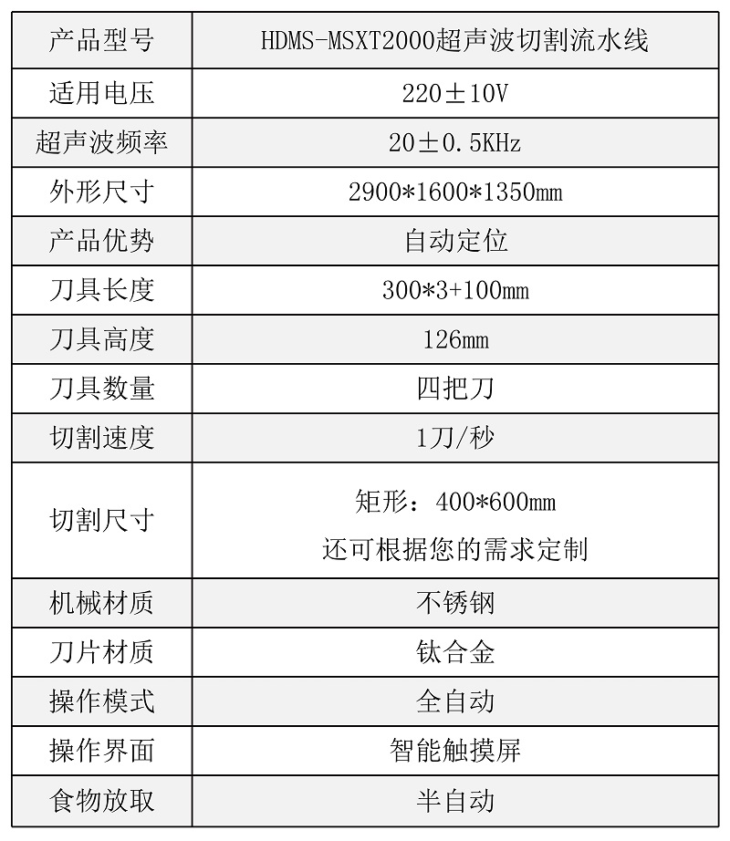 HDMS-MSXT2000超聲波食品切割生產(chǎn)線