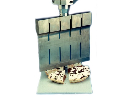Ultrasound food cutting machine is a kind of ultrasonic equipment specially used for cutting. Ultrasound is loaded on the cutting blade. Which results in the ultrasonic vibration on the blades and play a cutting effect. Its biggest character is that it cuts without using the blade edge. Or to say, it doesn’t use the traditional edges of knives to cut. While it use the ultrasonic vibration to cut the food. Making the cutting surface neat and beautiful, unchangeable, no chip, no sticking knife, improving cutting efficiency, holding by hand on a single machine and carrying easily. The effective cutting height of the equipment is over 100 mm, which can meet the needs of different customers and is favored by customers with higher food thickness.